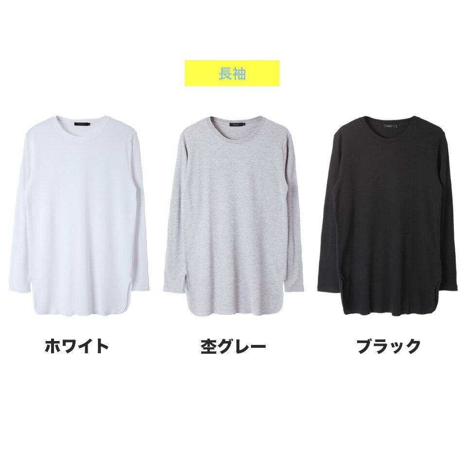 ◆ラウンドヘムロングサーマルT◆ロンT メンズ 長袖 カットソー Tシャツ サーマル ロング丈 レイヤード トップス スリット 無地 TEE